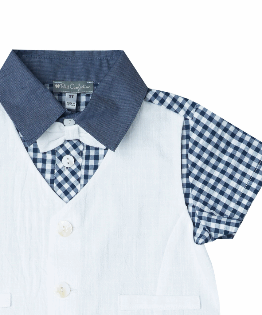 Smart casual is all about mixing elements of formalwear with everyday comfort. For infant boy dress clothes, that usually means:
